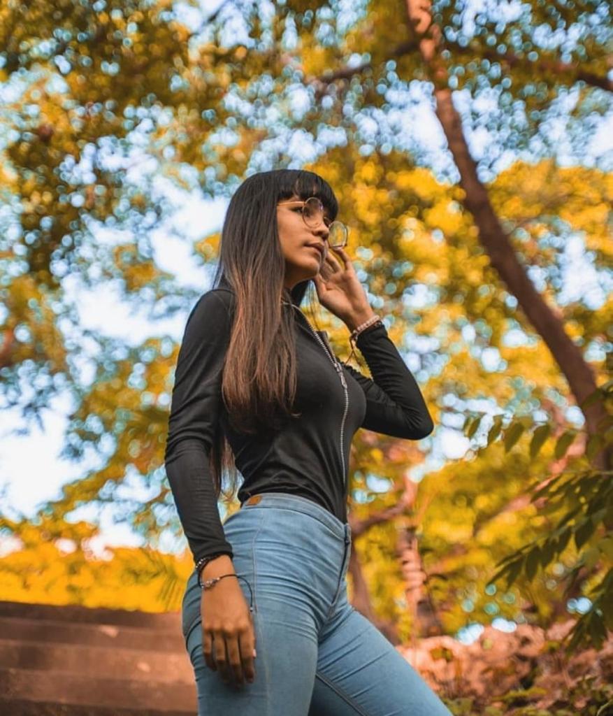 Observando a las personas pasar, la joven arregla su larga cabellera castaña. Tras saludar verbalmente, dice que para tratar de describirse desde el punto de vista de otra persona, tendría que haberse preguntado alguna vez qué opinan los demás de ella y que con sinceridad, son preguntas que no se había realizado hasta esta ocasión.